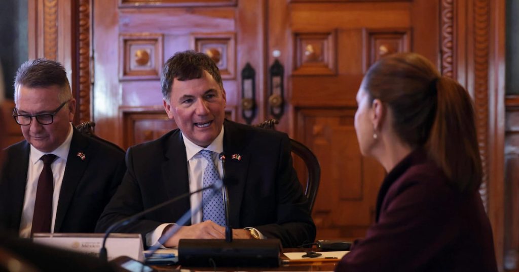 La presidenta Claudia Sheinbaum se reunió a puerta cerrada con los ministros canadienses de Comercio, Dominic LeBlanc, y de Agricultura y Agroalimentación, Heath MacDonald, con el objetivo de “fortalecer no solo el comercio, sino las inversiones”, con un posible acuerdo comercial bilateral México-Canadá previo a la revisión del T-MEC.
