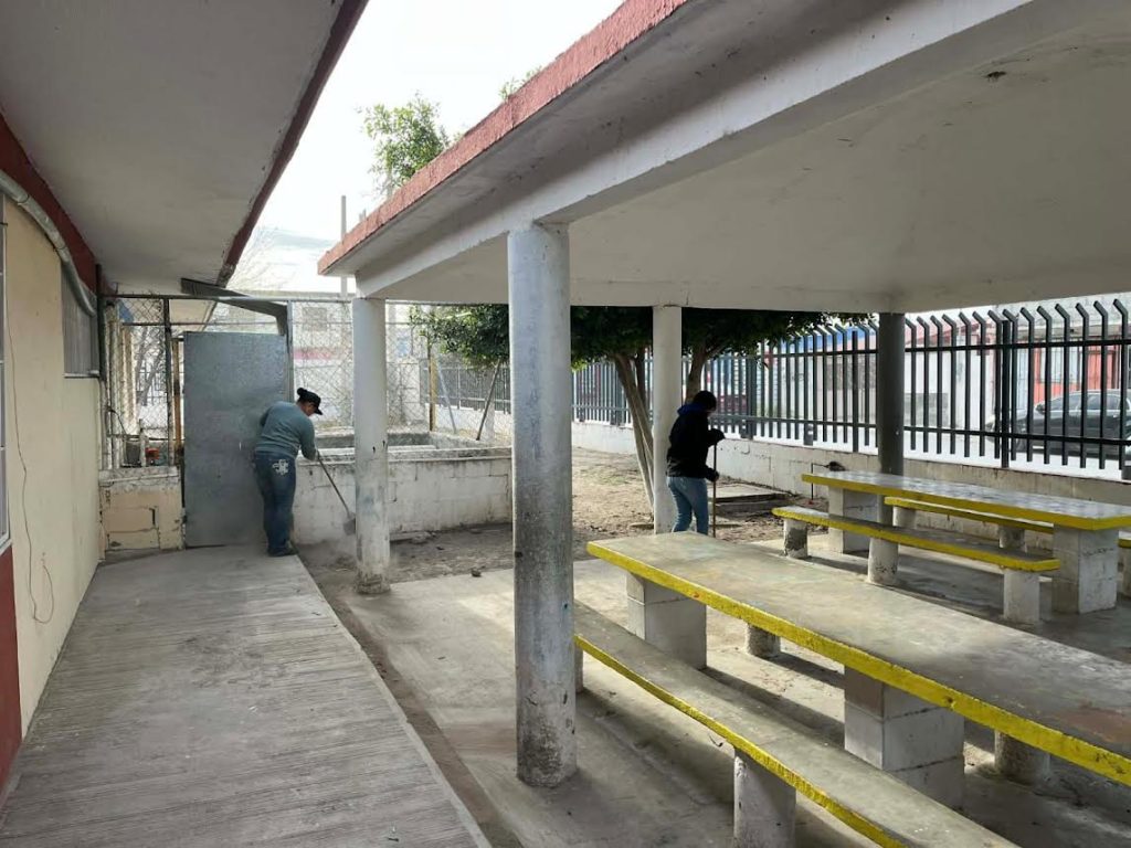 – Limpieza en la secundaria técnica No. 86, Joaquin Contreras Cantú, ubicada en la colonia Villa Florida Sector A.