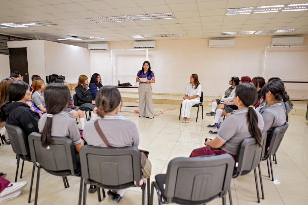 Durante el encuentro, dirigido a la comunidad escolar femenina, la Directora General del DIF Municipal, Gabriela Rosas Blanco, abordó temas relacionados con la superación personal, la preparación académica, el papel de la mujer en la sociedad, así como su trayectoria profesional y experiencia de vida, destacando la importancia de fortalecer valores, liderazgo y confianza para impulsar el crecimiento personal y profesional de las jóvenes.