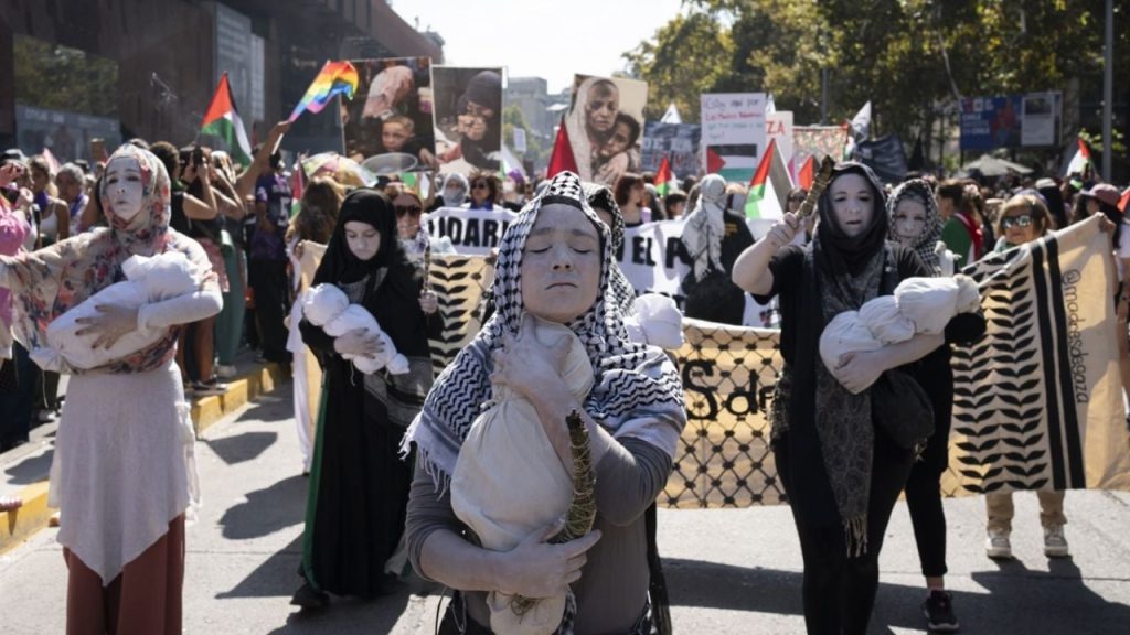 Con carteles en las que se leían consignas como “¡Qué kastigo!” o “Aborto sí o aborto no”, la marcha partió desde la emblemática Plaza Italia, epicentro del estallido social de 2019, y transcurrió por la principal arteria de la capital.