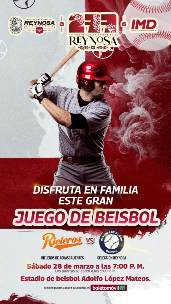 Reynosa, Tamaulipas.– El Gobierno Municipal de Reynosa, en coordinación con el Instituto Municipal del Deporte (IMD), invita a la ciudadanía a disfrutar de un emocionante encuentro de béisbol que promete reunir a familias y aficionados al deporte.