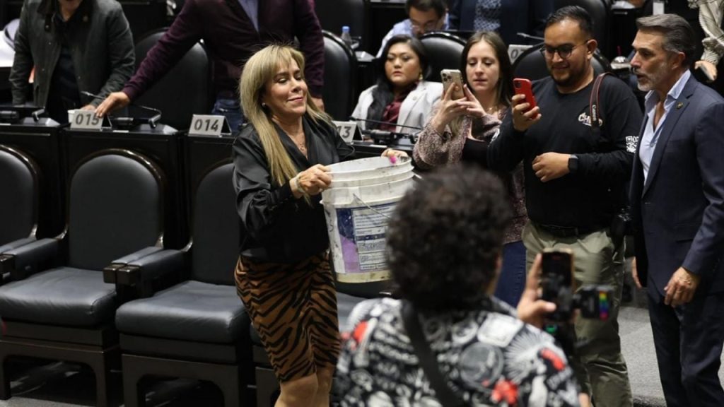 La morenista remató: “¡Hipócrita, porque lo que traes en esa cubeta es fertilizante de tu tienda!”; mientras el diputado Zenyazen Escobar la observaba sorprendido, como si nunca hubiera escuchado la voz de su compañera de bancada.