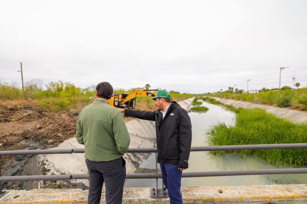 Dando impulso permanente al programa de mantenimiento de la infraestructura hidráulica, el Presidente Municipal Carlos Peña Ortiz supervisó el desazolve del Dren Reynosa, en el tramo de las colonias Miguel Hidalgo, Vicente Guerrero, Ribereña, y Del Valle.