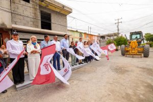 El Alcalde Carlos Peña Ortiz en compañía de los vecinos de Lomas del Villar, dio inicio a la pavimentación hidráulica de la calle Industriales en