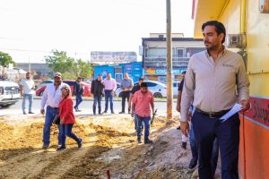 El Presidente Municipal Carlos Peña Ortiz supervisó el avance en la construcción de la pavimentación de la calle Nuevo Laredo en la colonia Revolución Obrera,