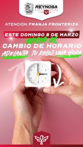 El Gobierno Municipal de Reynosa te invita a poner al día tus relojes, y dispositivos electrónicos; este domingo 8 de marzo inicia el Horario de