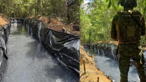 Las Fuerzas Armadas identificaron que este lugar funcionaba como un lugar de almacenamiento de combustibles; se aseguraron 3 mil metros de manguera y una válvula de alta presión
